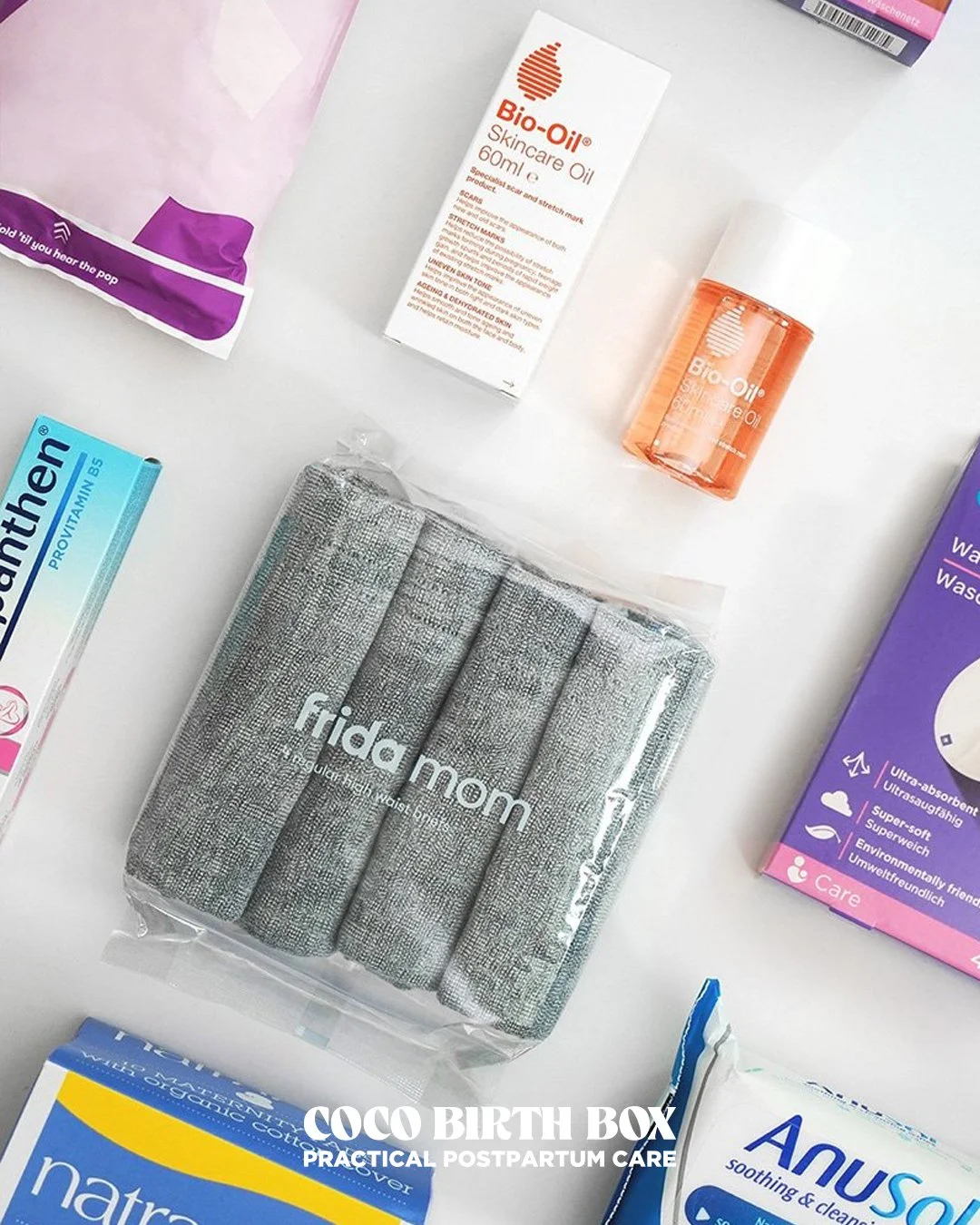 We created Coco Birth Box to cover the real essentials for postpartum healing — the pads, pants, ice packs, and the honest truths no one tells you.